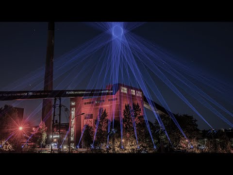 The outdoor installation ‘Another Moon’, designed by the artist duo Kimchi and Chips, was presented for the first time in the former coal mine, the UNESCO World Heritage Site Zeche Zollverein, in Essen. The idea behind it was to create a three-dimensional shape consisting of laser beams symbolizing a second moon in the sky. This public artwork could still be seen from a distance of 1 kilometer and was intended to bring people together again in the aftermath of the Corona pandemic.