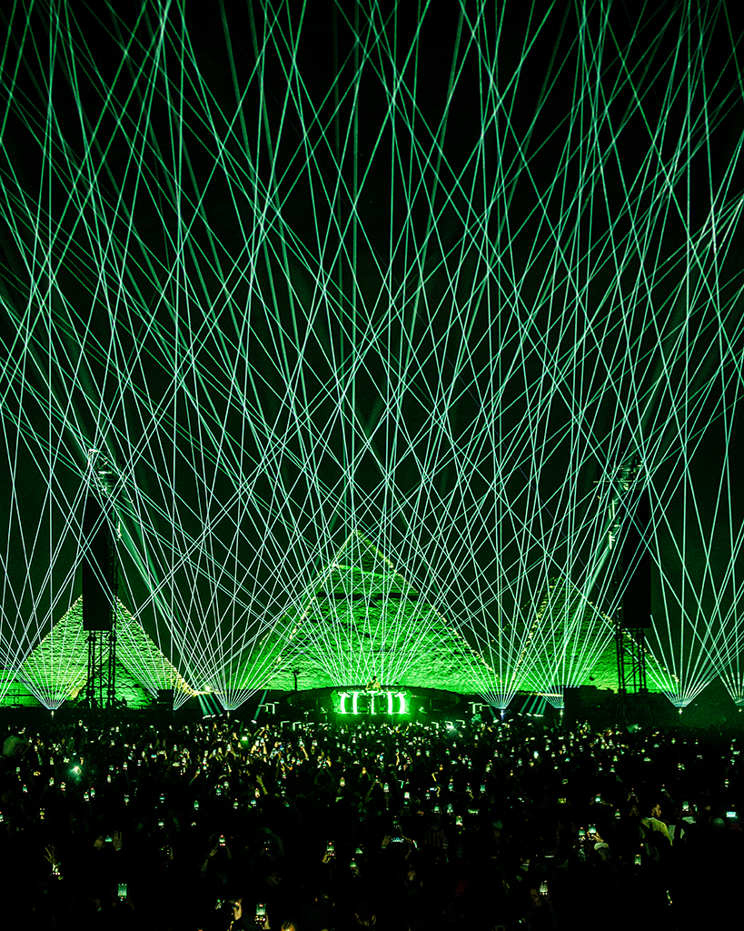 Sein Auftritt am 19. Dezember 2025 verwandelte das Plateau der Pyramiden von Gizeh in eine eindrucksvolle Freiluftbühne. Der etwa dreistündige Auftritt wurde von Medien und Zuschauern als historisches Live-Event beschrieben. Er zog mehrere Tausend Besucher aus aller Welt an. Das Abendprogramm war so geplant, dass die Show vom Sonnenuntergang bis zur nächtlichen Licht- und Lasershow perfekt zur Geltung kommen konnte.